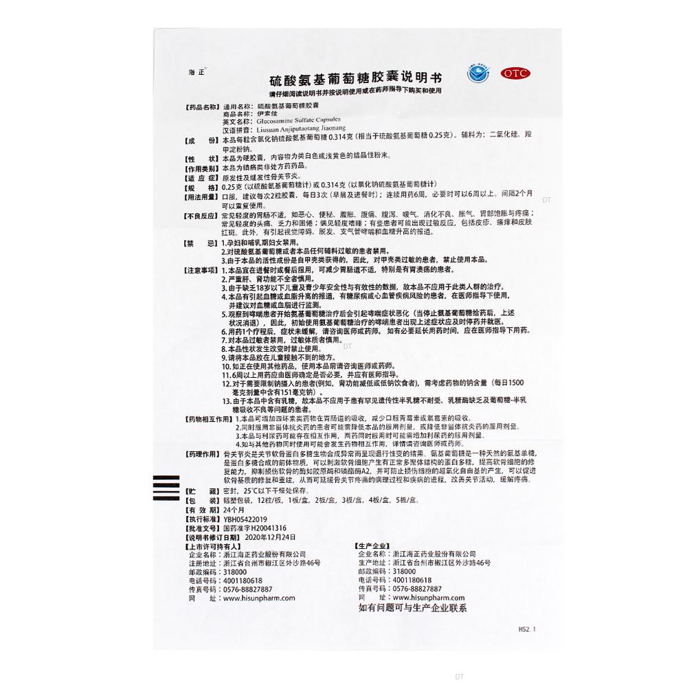 通用名称:硫酸氨基葡萄糖胶囊(伊索佳)