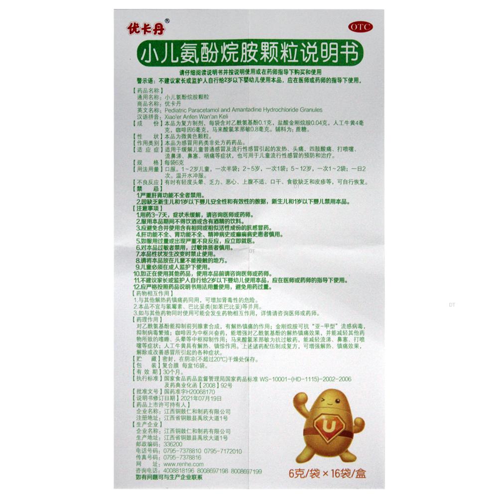通用名称:小儿氨酚烷胺颗粒(优卡丹)