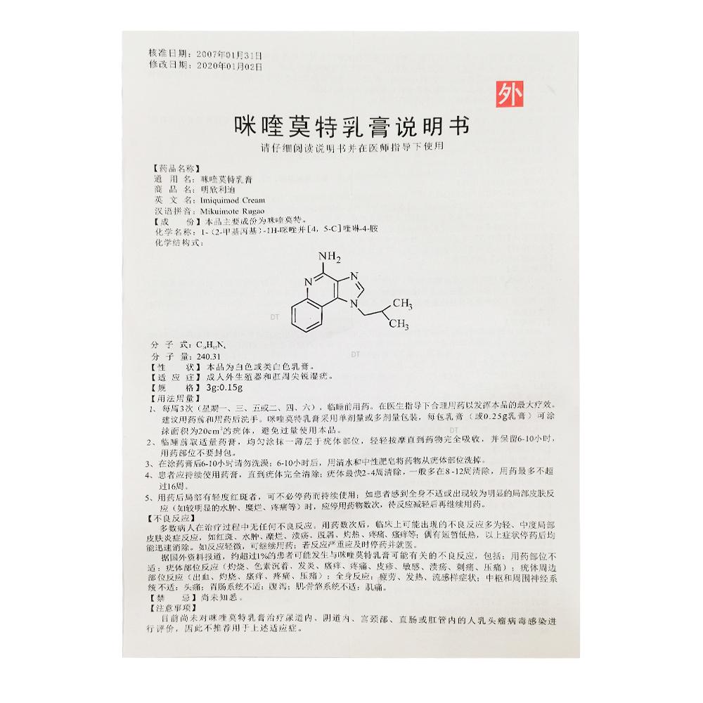 通用名称:咪喹莫特乳膏(明欣利迪)