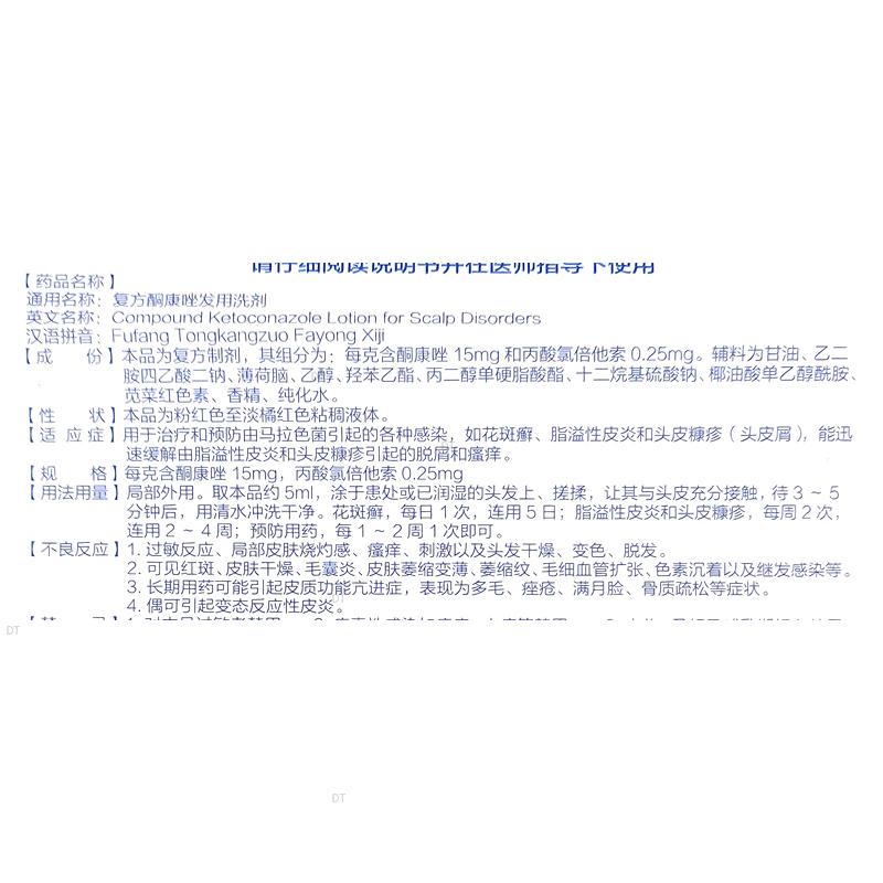 本品为复方制剂,每克含酮康唑15毫克,丙酸氯倍他索0.25毫克。