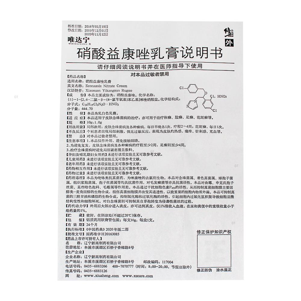 通用名称:硝酸益康唑乳膏