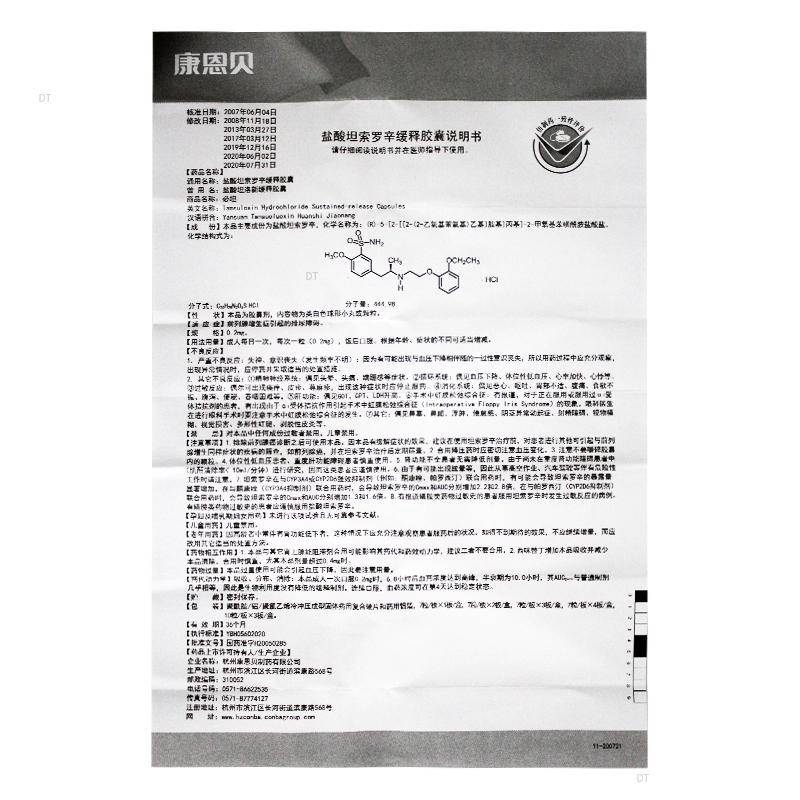 通用名称:盐酸坦索罗辛缓释胶囊(必坦)
