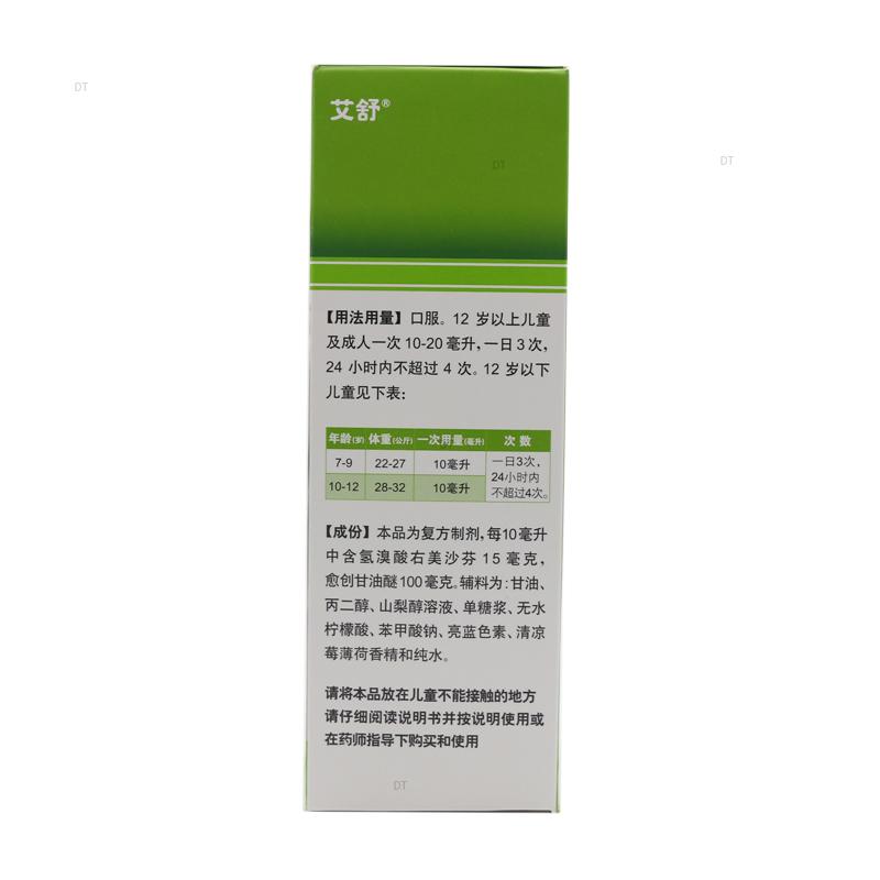 本品为复方制剂,每10毫升中含氢溴酸右美沙芬15毫克,愈创甘油醚100毫克。