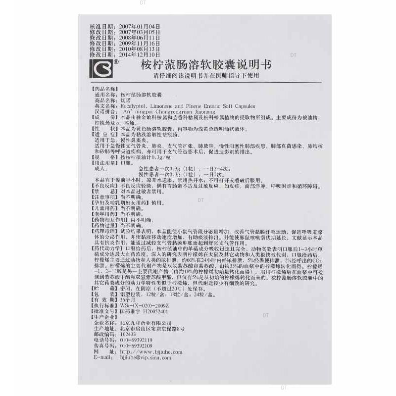 通用名称:桉柠蒎肠溶胶囊(切诺)