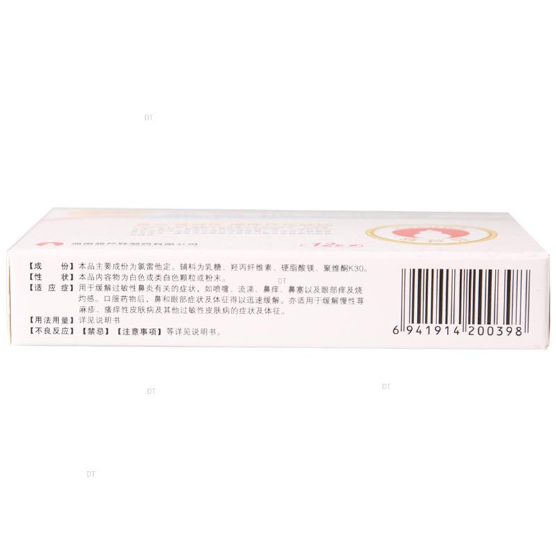 本品用于缓解过敏性鼻炎有关的症状,如喷嚏、流涕、鼻痒、鼻塞以及眼部痒及烧灼感。口服药物后,鼻和眼部症状及体征得以迅速缓解。亦适用于缓解慢性荨麻疹、瘙痒性皮肤病及其他过敏性皮肤病的症状及体征。
