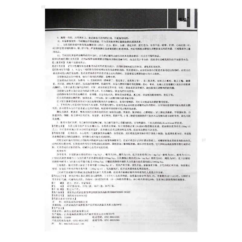 6、本品应在医生指导下服用。必须定期检查患者的血糖、尿糖、尿酮体、尿蛋白、肝功能、肾功能、血象,并进行眼科检查。