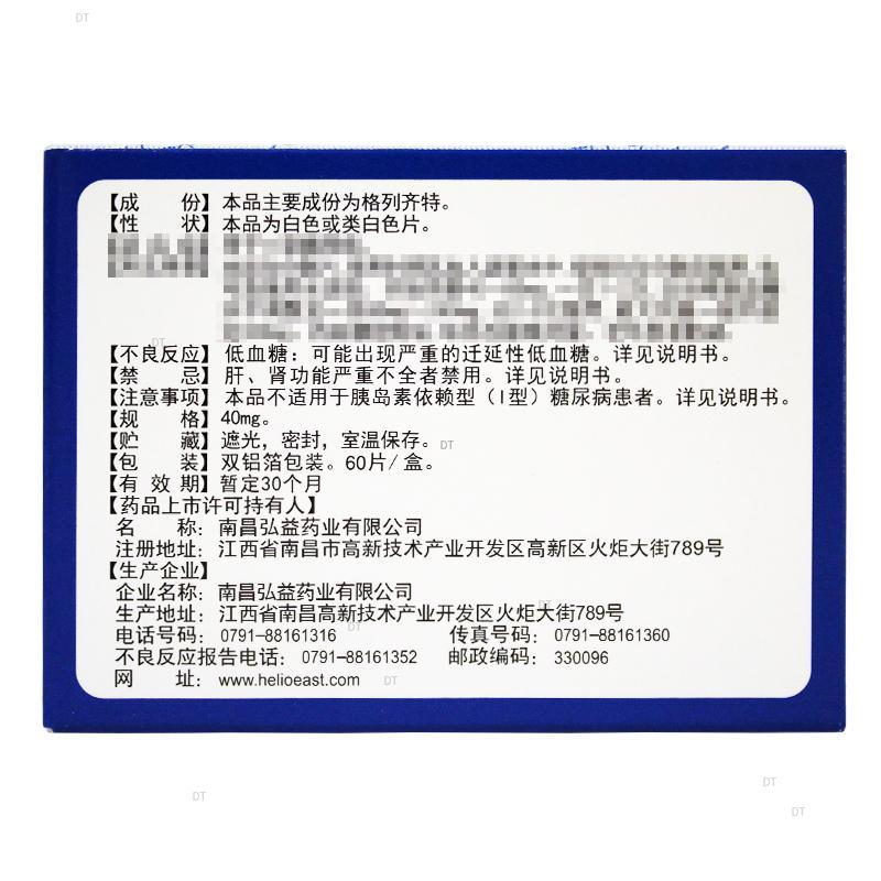 通用名称:格列齐特分散片(弘旭阳)