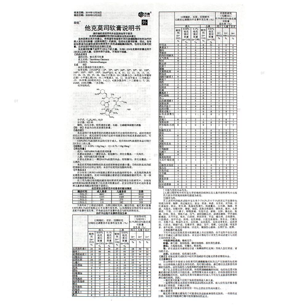 通用名称:他克莫司软膏