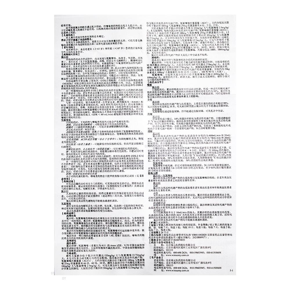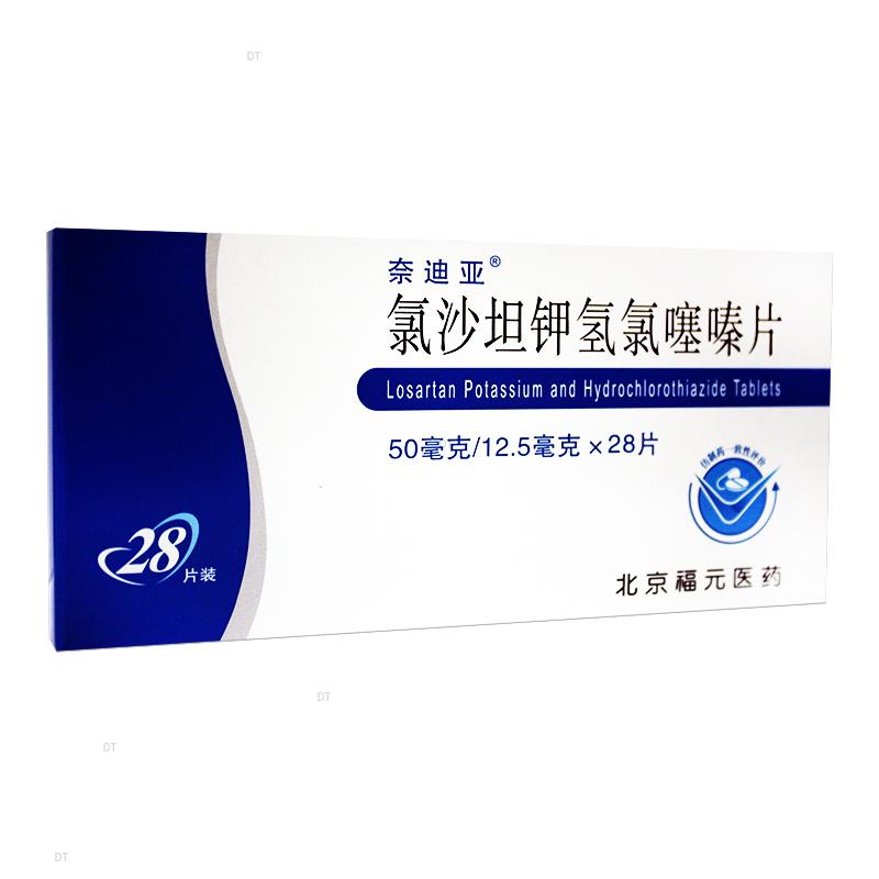 本品为复方制剂,其组份为:每片含氯沙坦钾50mg和氢氯噻嗪12.5mg。