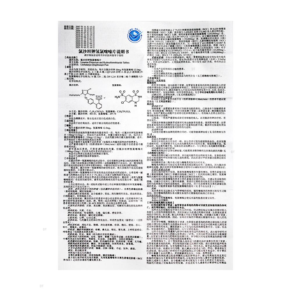 通用名称:氯沙坦钾氢氯噻嗪片