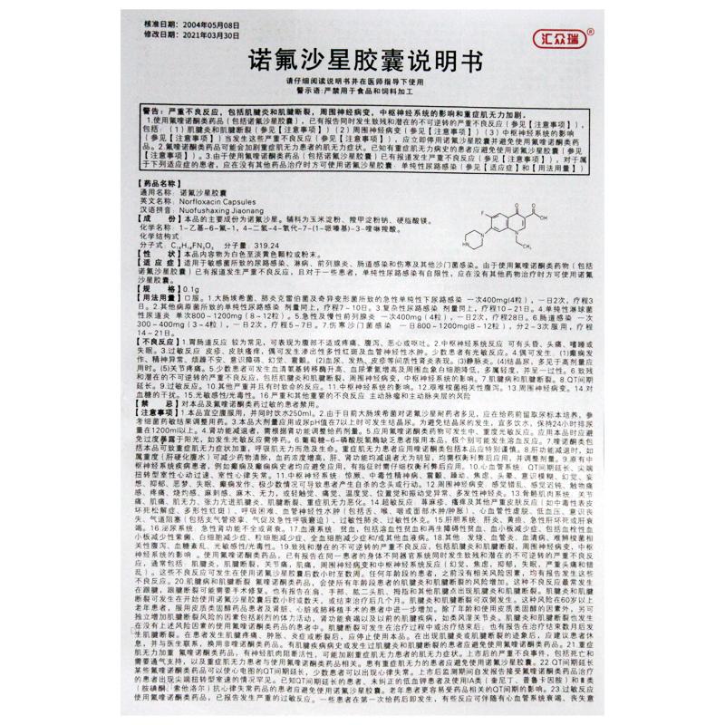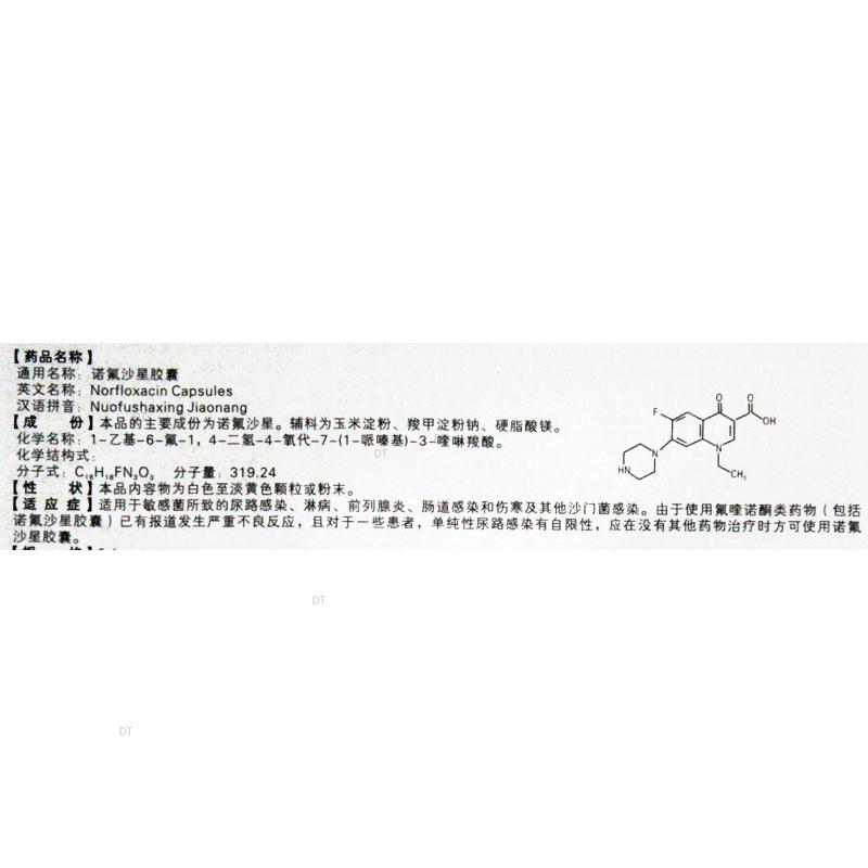 通用名称:诺氟沙星胶囊