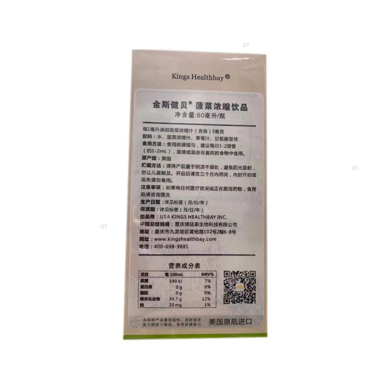商用名称:金斯健贝牌菠菜浓缩饮品