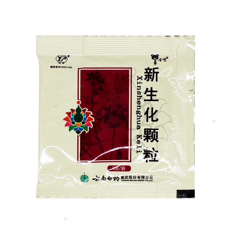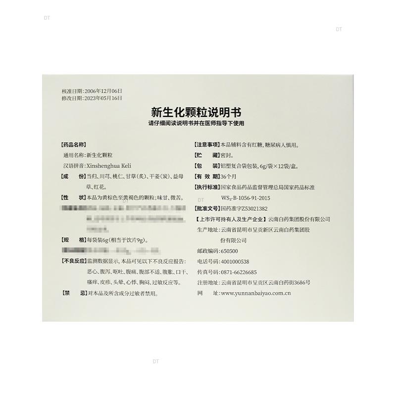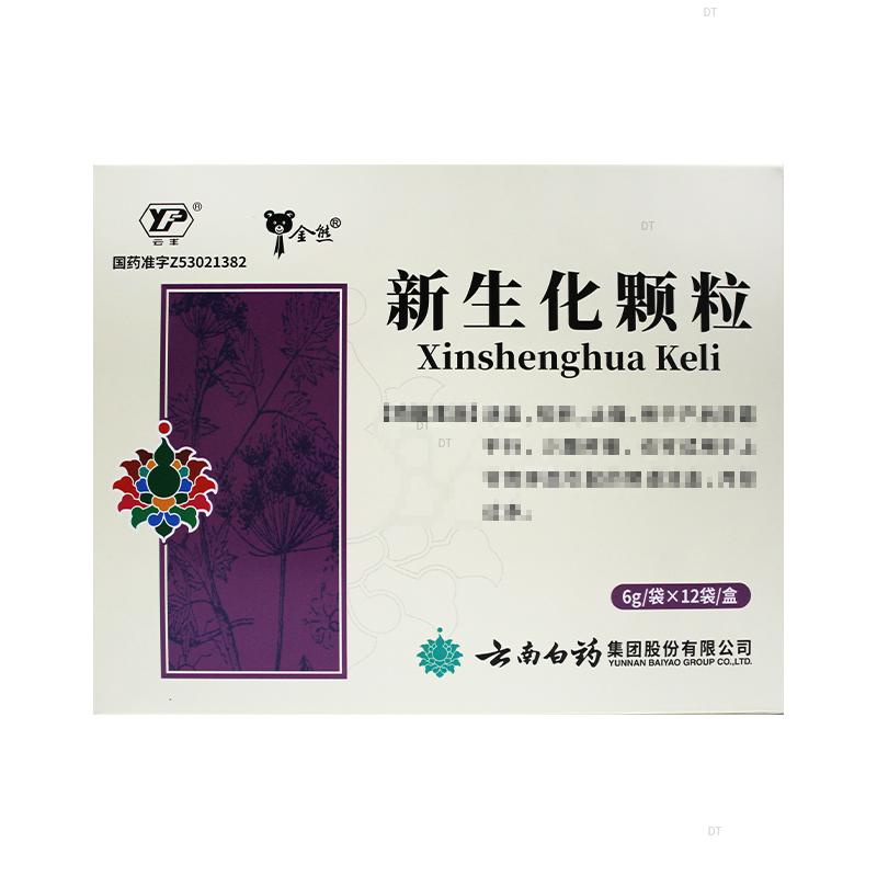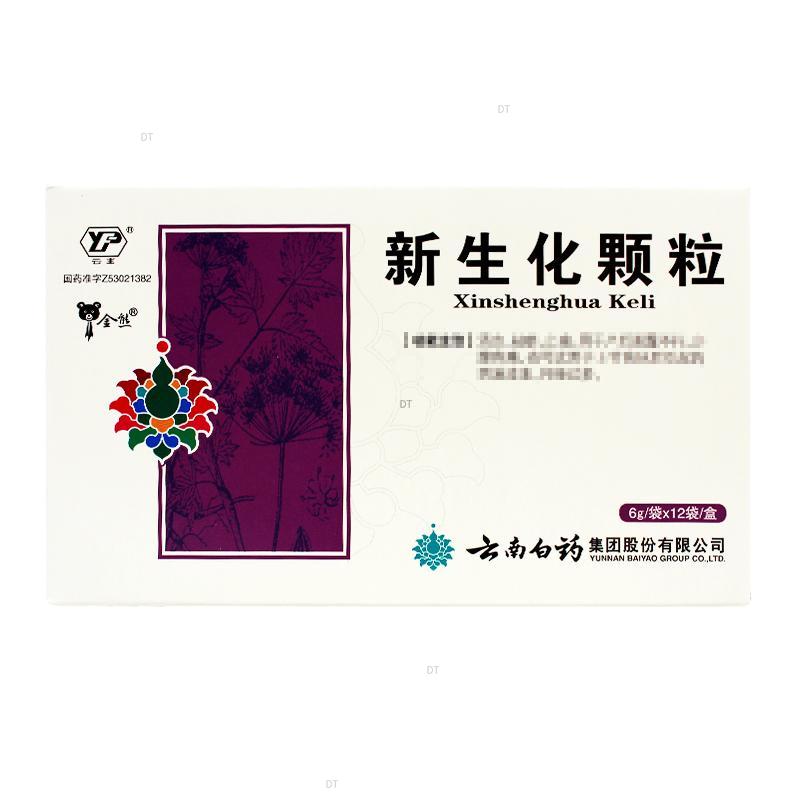 当归、川芎、桃仁、炙甘草、干姜(炭)、益母草、红花。辅料为:红糖。