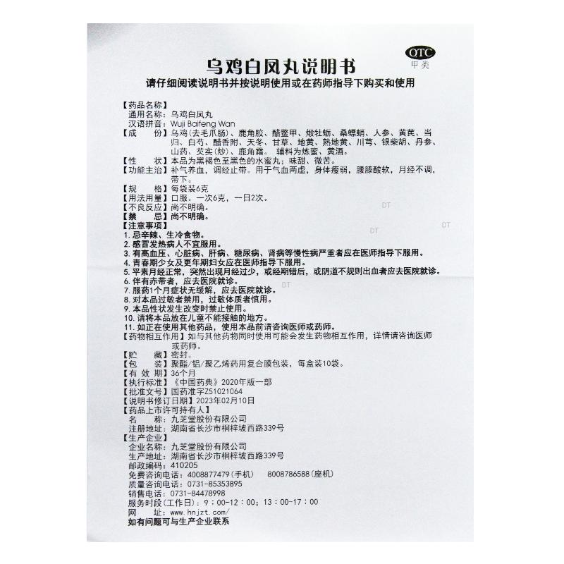商用名称:乌鸡白凤丸