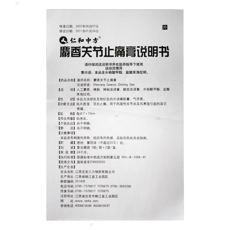 人工麝香、辣椒流浸膏、颠茄流浸膏、樟脑、水杨酸甲酯、盐酸苯海拉明。
