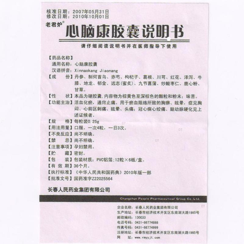 通用名称:心脑康胶囊