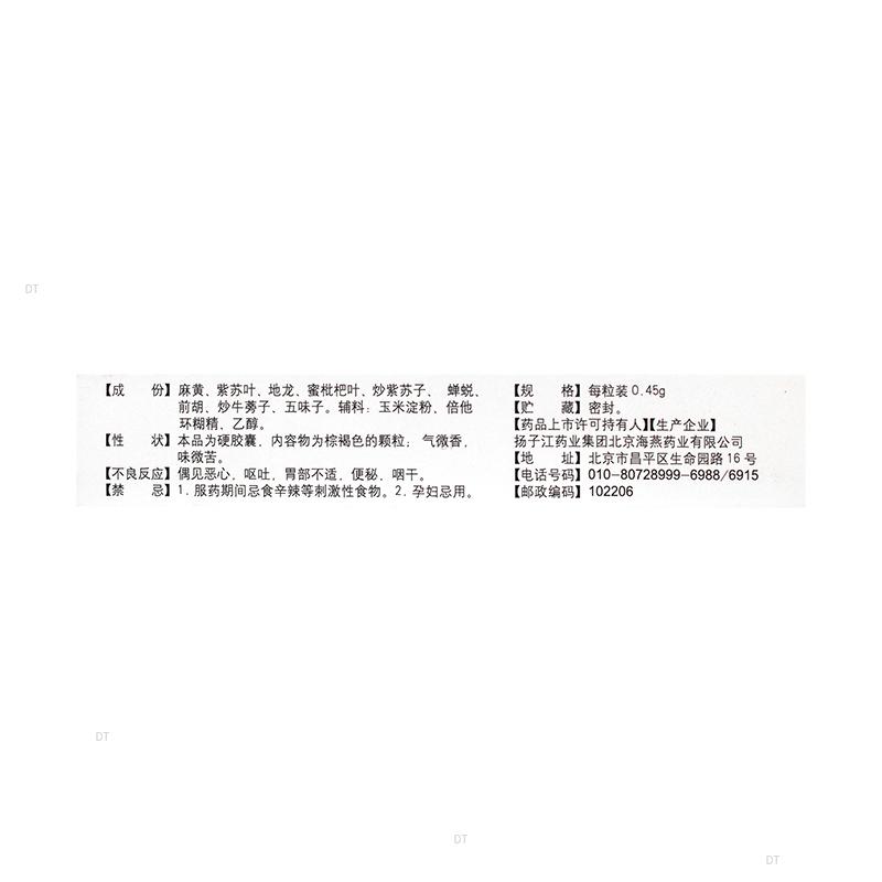 通用名称:苏黄止咳胶囊