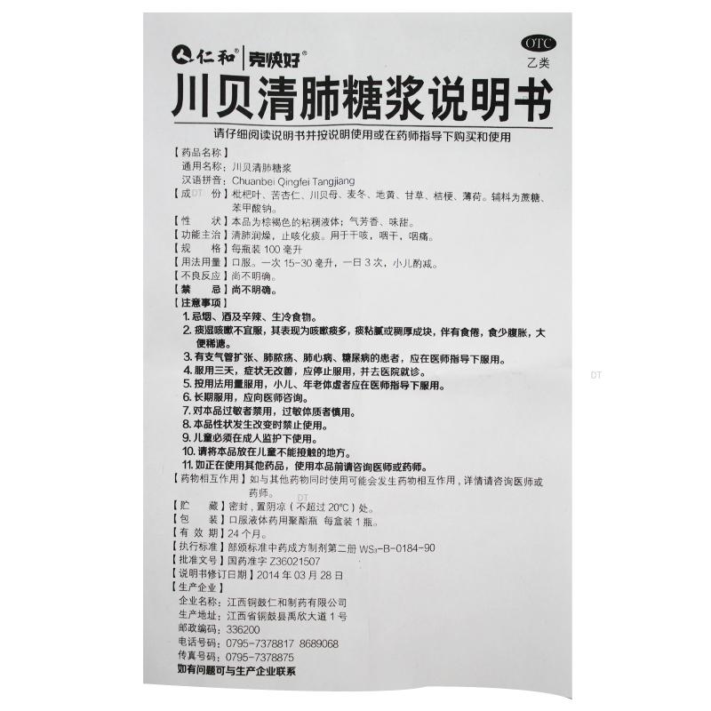 通用名称:川贝清肺糖浆