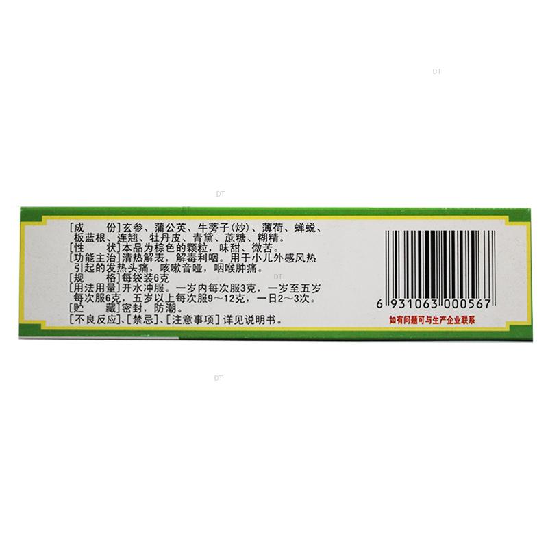 清热解表,解毒利咽。用于小儿外感风热引起的发热头痛,咳嗽音哑,咽喉肿痛。