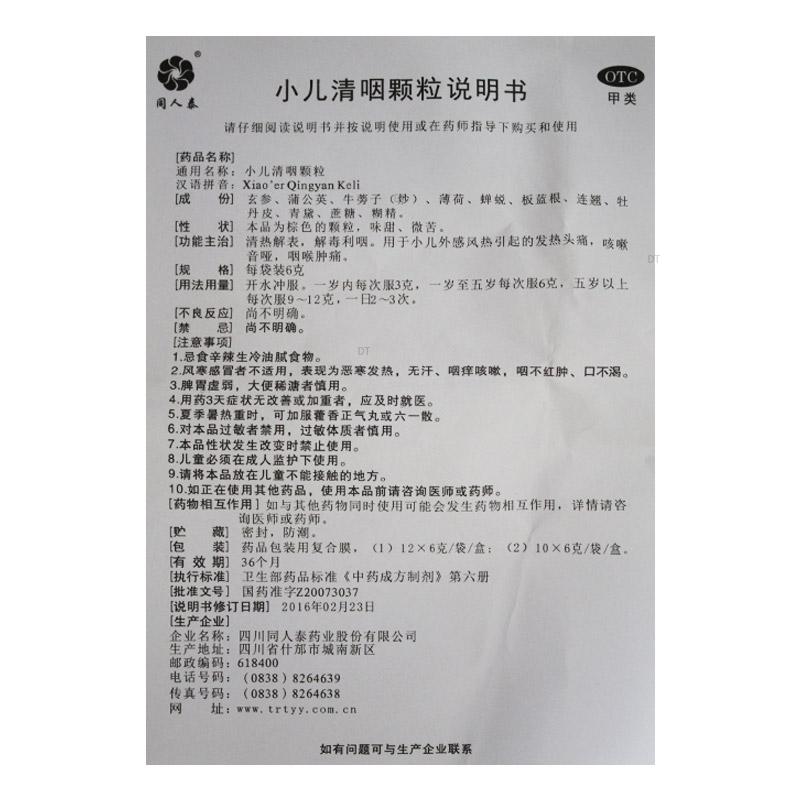 通用名称:小儿清咽颗粒