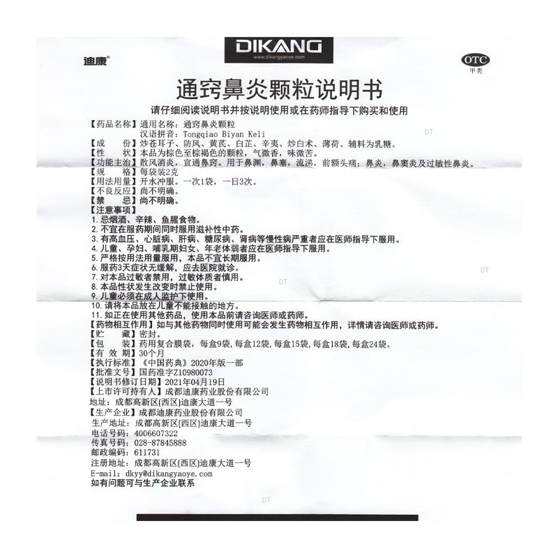 通用名称:通窍鼻炎颗粒